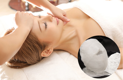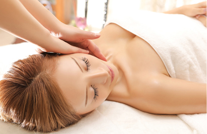 ①頭蓋骨剥がし最初に特殊なカッサで頭蓋骨に癒着している筋肉を剥がし、ゆるめます。頭蓋骨には前頭筋、側頭筋、後頭筋と筋肉におおわれています。硬くなった筋肉を丁寧に剥がし、ゆるめてあげることで、小顔になりやすい状態にします。※写真はイメージです。実際のカッサは違うものを使用します